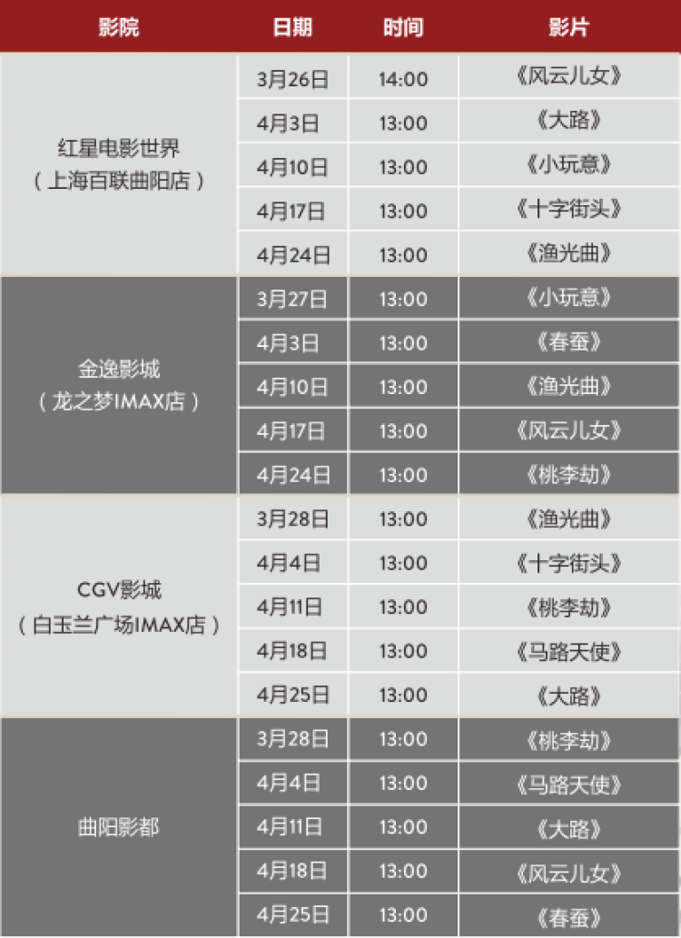 这次选取的8部影片是其中极具代表性的作品,其中有诞生国歌《义勇军进行曲》的《风云儿女》,有中国第一部以有声手法拍摄、反映青年学生坎坷生活的电影《桃李劫》,有中国首部获得国际荣誉、讲述中国渔民家庭的电影《渔光曲》,也有上官云珠、周璇、阮玲玉等上世纪影星拍摄反应大众命运、呼唤民族奋起的电影。