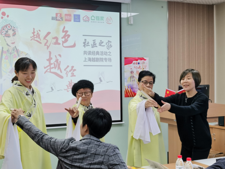 越剧凭借才子佳人的情节,优美动听的旋律,真切动人的表演拥有广泛的群众基础,本次活动邀请到上海越剧院的专业演员进行表演和互动,受到了社区党员和居民的追捧。
