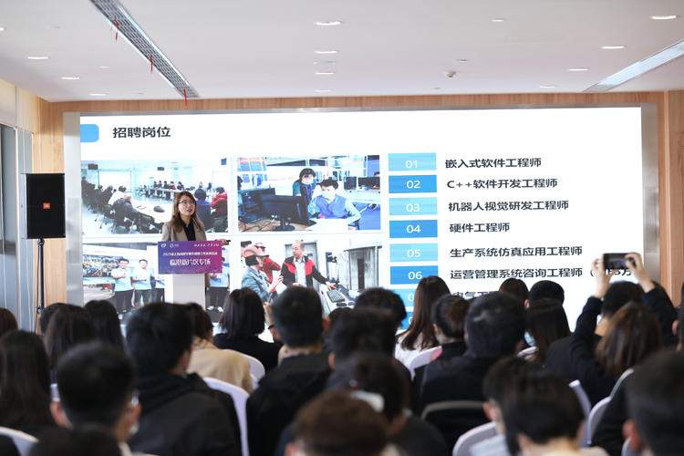 临港新片区企业代表特斯拉、上海智能制造功能平台现场发布招聘岗位。此外,在企业面洽环节,来自集成电路、人工智能、生物医药、航空航天等新片区重点产业的20余家企业,为高校毕业生提供了上百个优质职位,并在现场与学生进行了面对面的交流。