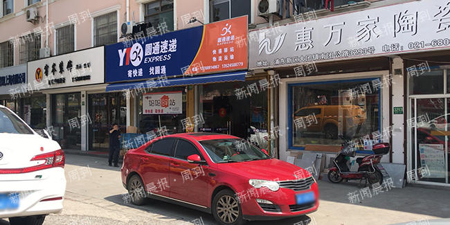 从王先生的厂房出来,到出口处,有十来家商户:开饭馆的、搞装修的、做标牌的、开超市的等等,还有一家圆通速递公司的门店。王先生说,这家快递公司是最近两个月才来的,他们每天把车停在这条狭窄的巷道里装卸货,让他们进出很不方便。