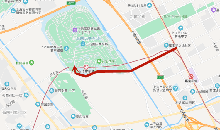 1、中环路-G2京沪高速- G15沈海高速-G1503绕城高速-嘉松北路收费口出-嘉松北路-嘉安公路;
