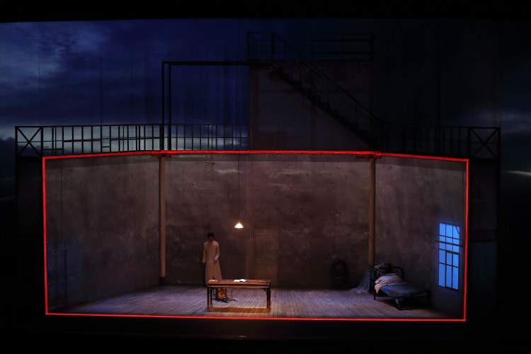 舞台上,三层楼高的布景和陡峭的楼梯也让观众们为正在演出的演员们捏一把汗。同时,三面投影墙和框架式的红色灯管形成了独立的演出空间。