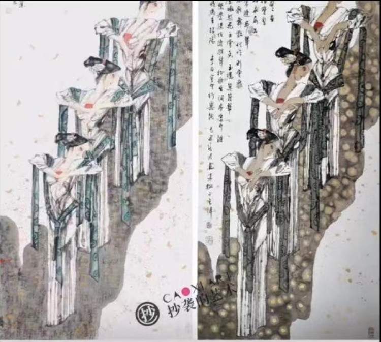从网友发出的马寒松与王筱丽作品对比图可见,王筱丽作品不是借鉴,的确是完全的抄袭,从构图、造型、用色等等,都与原作高度一致。按照网友的说法“就像是复印的一样”。