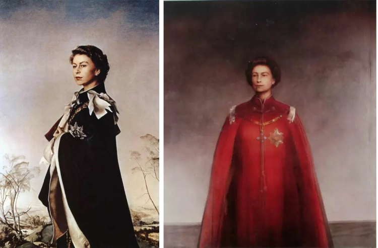 ■两幅阿尼戈尼创作的伊丽莎白二世的肖像,左为更受欢迎的版本