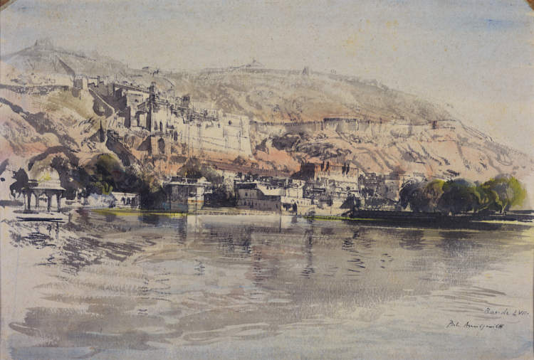 在创作技法上,阿尼戈尼的表现也是“百科全书”式的。这一点在展览的风景画区域尤为明显,有水墨、水彩、色粉、油画,甚至还有中国水墨。