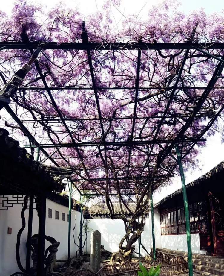 枝如游龙,花如瀑布,紫藤的美是让人震撼的。