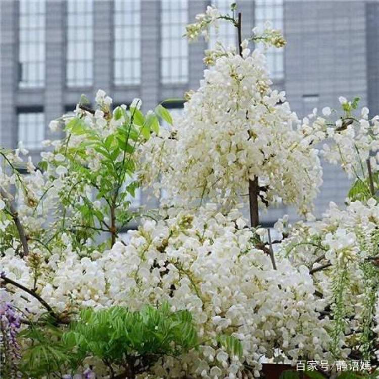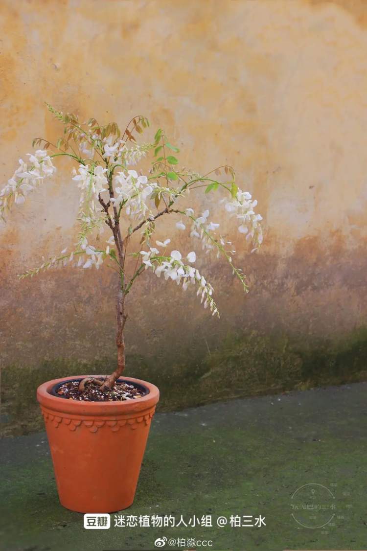 麝香藤是一种开花是白色的品种,花絮20-30厘米,花香,新叶呈现古铜色。它是紫藤中的盆栽佳品。
