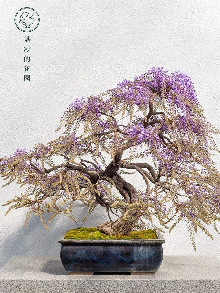 不过,紫藤也有少量适合盆景的品种,重在剪枝造型,非常雅致。前面提到的麝香藤、红玉藤、丰花紫藤,还有紫水晶,都是可以盆栽的。