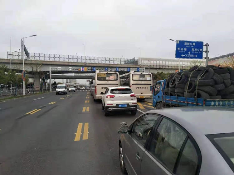 为解决早高峰上S3长距离拥堵情况,浦东交警综合利用现有道路宽度,重新设计布局车道,将双向四车道调整为双向五车道,中间1根为潮汐车道。