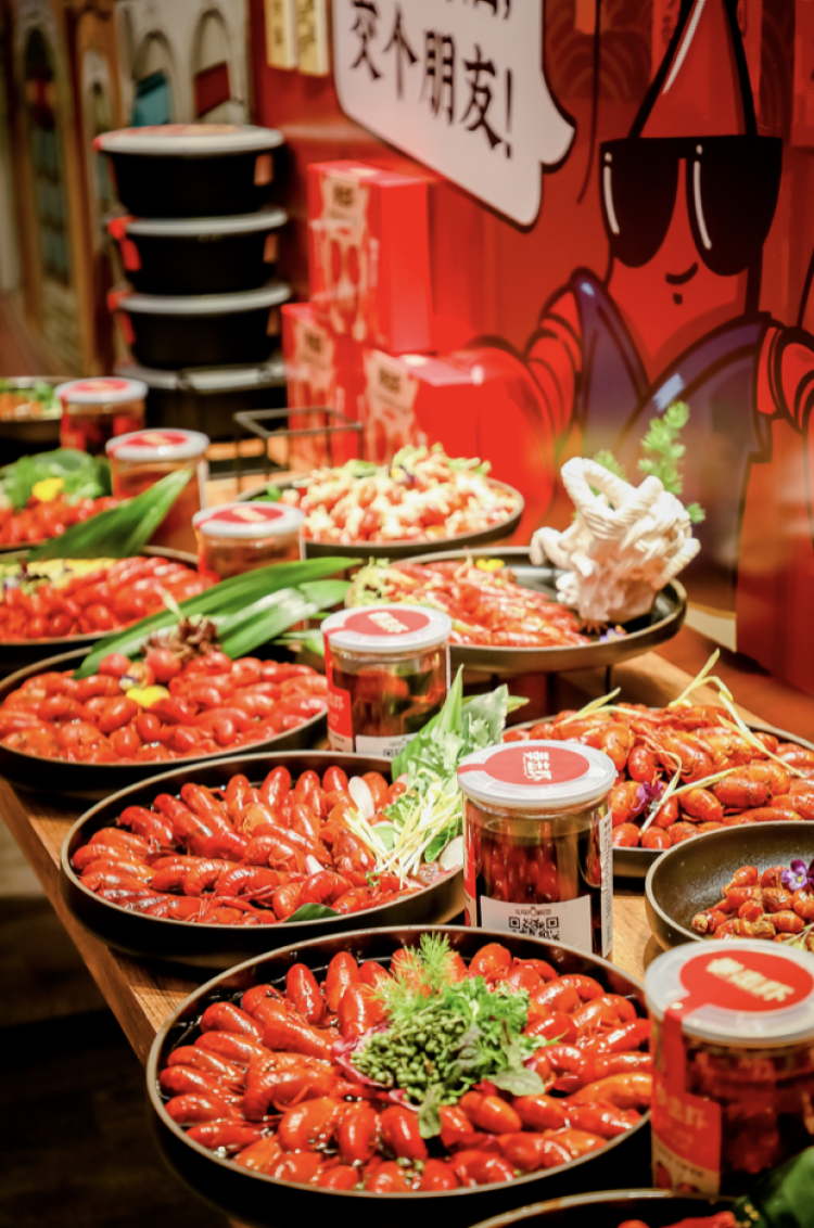 不仅有荔枝味、橙子味、山楂味、白兰地味等各种新奇口味,还有小龙虾沙拉、饭团、串串、麻辣香锅等半成品菜,此外冷吃、冷鲜、冷冻、热吃各种吃法,让你哪怕在办公室里,都能小龙虾“开罐即食”。