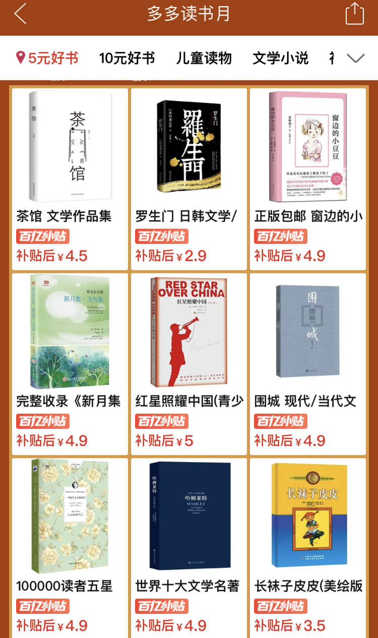 一方面,拼多多倾斜资源,建立专项读书基金,启动“多多读书月”大型活动,联合中信出版社、知识出版社、青岛出版社等30余家出版社及图书出版公司,针对社科、文艺、教辅等多个类目超过1000款图书进行百亿补贴,旨在推动“平价好书 全民悦读”理念。