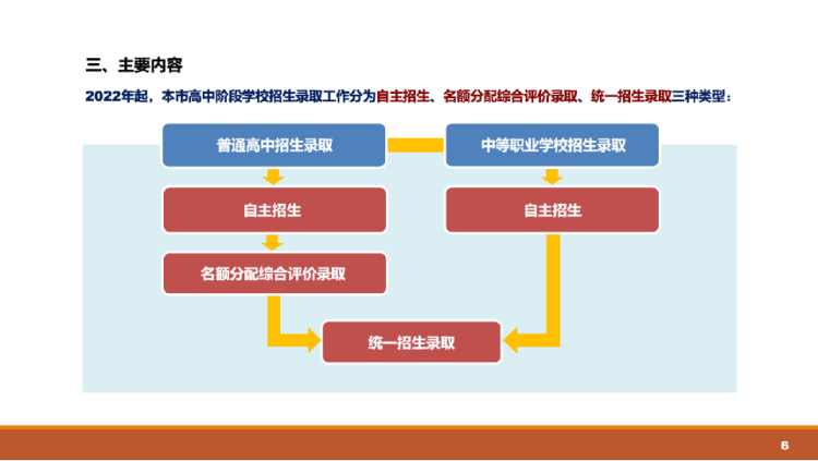 (2)从2022年起,本市高中阶段学校招生录取工作分为自主招生录取、名额分配综合评价录取和统一招生录取三种类型。
