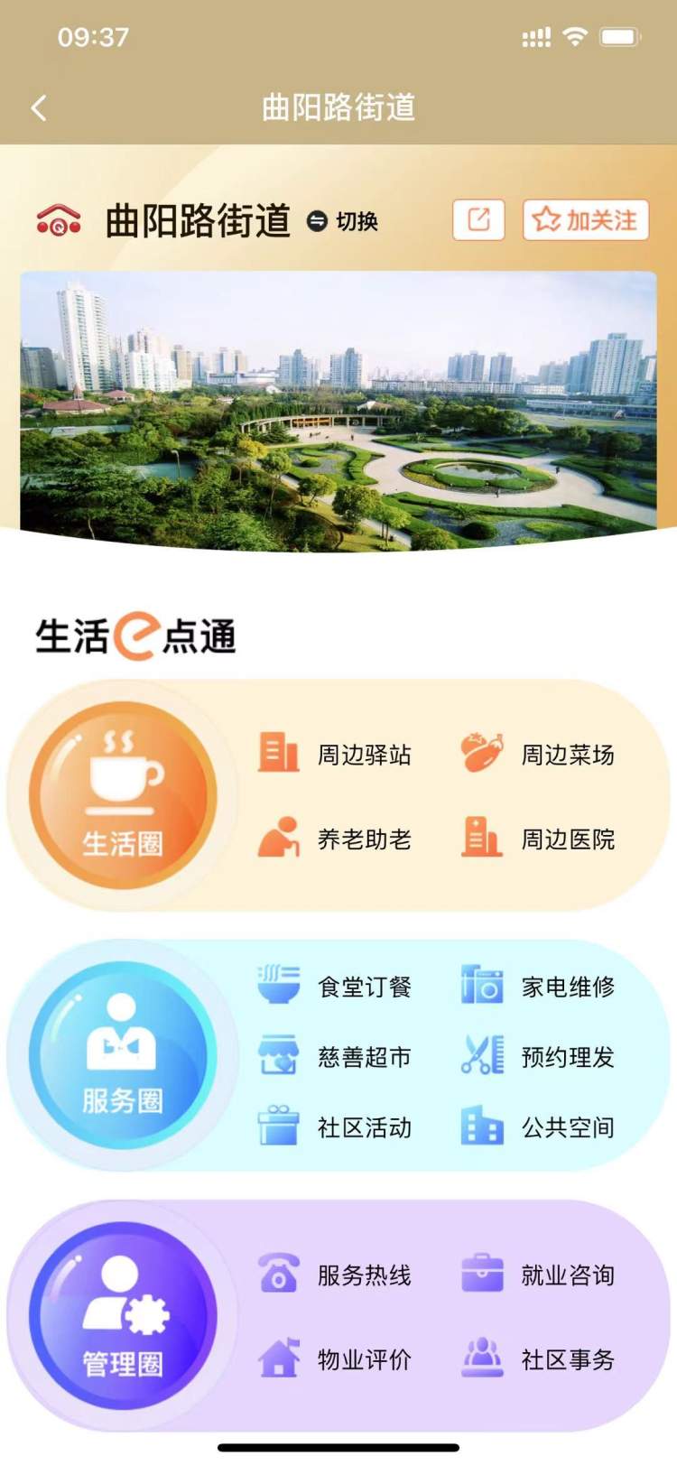 曲阳路街道负责人介绍说,“生活e点通”平台是生活信息和社区服务的集散地,汇聚周边的公共服务网点和社区生活服务资源,可覆盖社区食堂、生活易购、家具维修、文娱活动、医养结合、居家出行、代办跑腿、便民服务等八大类功能,为居民提供个性化的服务推荐。平台还是“一网统管”的延伸地,通过服务热线、线上物管家、“百事通”功能建设,做强做优“管理网”,使社区管理更高效、更透明。