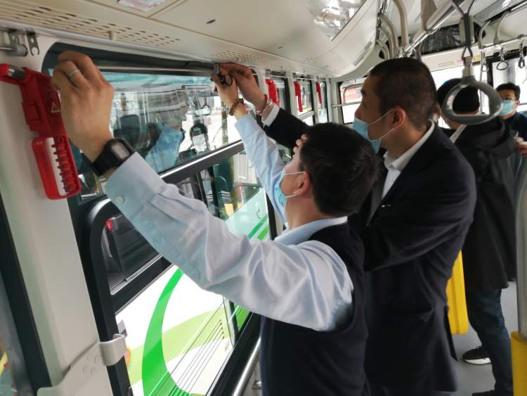 记者看到, 49路“白金刚”纯电动车,一辆车就有30块窗帘、11种尺寸,安装过程较为繁琐复杂。大家摸索寻找安装技巧,不断加快安装速度。大家整整一天的齐心努力,热火朝天地忙碌,就是要为市民乘客创造一个清凉舒适的乘车环境。