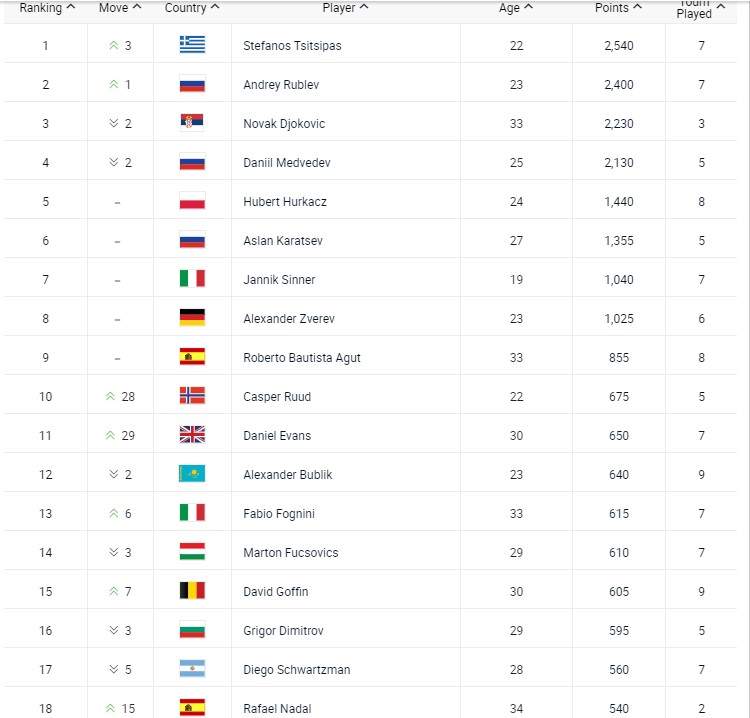 更何况,截止上周的ATP冠军榜,西西帕斯以2540分高居榜首,赛季22胜5负的战绩不如德约(截止上周)的10胜1负、包含一个大满贯冠军,但22岁的后生晚辈开启“劳模”模式,就是比现世界第一在2021赛季还多拿了310分。纳达尔?两个八强暂列第18位,靠巴塞罗那进账的500分,今天刚刚挤进前10。费德勒更低,仅有多哈的45分,(截至上周)暂列第222位。