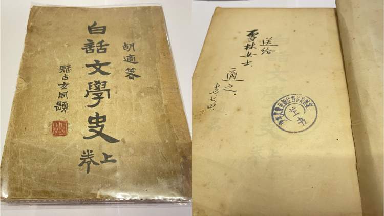 胡适送给苏雪林的签名本《白话文学史》