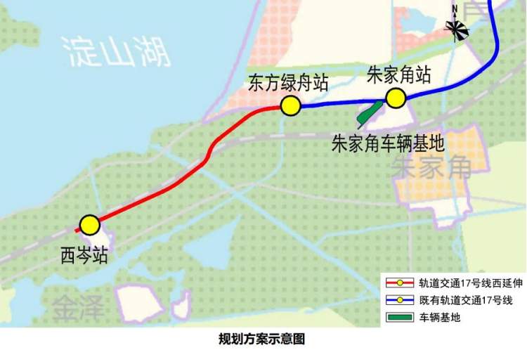 17号线西延伸工程是《长江三角洲地区交通运输更高质量一体化发展规划》项目之一,规划实施的是其中的东方绿舟站-西岑站段。它从既有17号线终点东方绿舟站出发,向西延伸约6.6公里至西岑站。