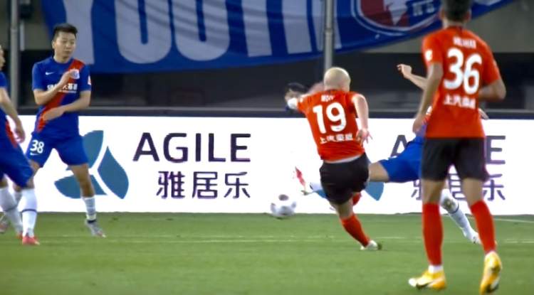 海港队下半场两次最有威胁的进攻都来自穆伊,一个就是打破场上僵局的那个远射世界波破门。