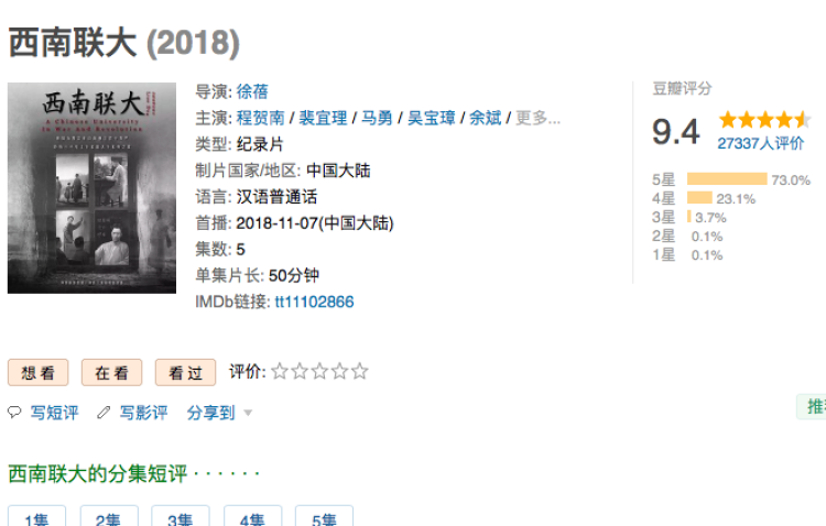 “心神往之的一段历史,务实又浪漫,艰苦而又活泼,大师星布,浩篇充栋。”“有爱国主义,有书生情怀,有高山仰止,也有人间烟火。”仅在豆瓣平台,观众就留下近万条走心评论,“自来水”汹涌而来。