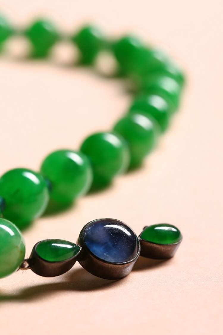 一串朝珠,两条项链,背后掩映着皇室荣耀和朝代更迭,翡翠的光泽中,还映衬出黄氏家族在近代史上的百年历程以及多位历史名媛的传奇人生。这条翡翠项链,集质地之美、工艺之美、历史传承、文化内涵于一身,因此被称为“中国古董珠宝之冠”。