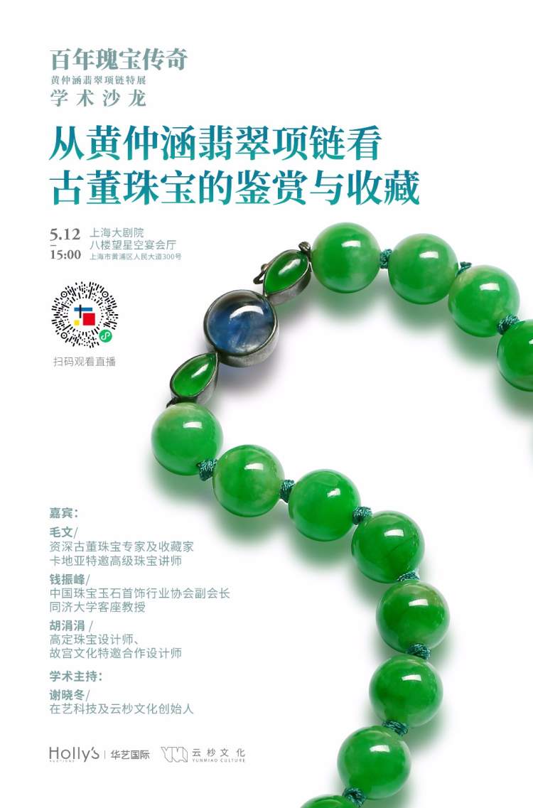 5月12日下午,主办方将举办主题沙龙《从黄仲涵翡翠项链看古董珠宝的鉴赏与收藏》,为您详细讲述黄仲涵项链的百年故事。5月22日、23日特展将亮相于北京华艺空间,在6月份举办的华艺国际北京春拍中,该项链将闪亮上拍。