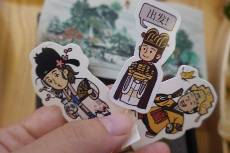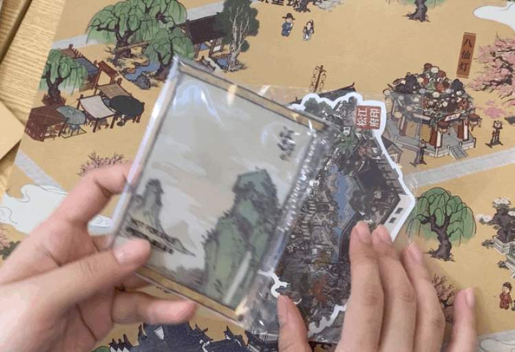 杯垫和餐垫几乎是标配,还有限定明信片、兑换卡、透卡、人物立牌等。透卡的玩法非常有趣,按照规定时间去餐厅吃三餐,可以分别获得展昭、白展堂、背景的透卡,集齐后扣在一起,才是完整的“画卷”。