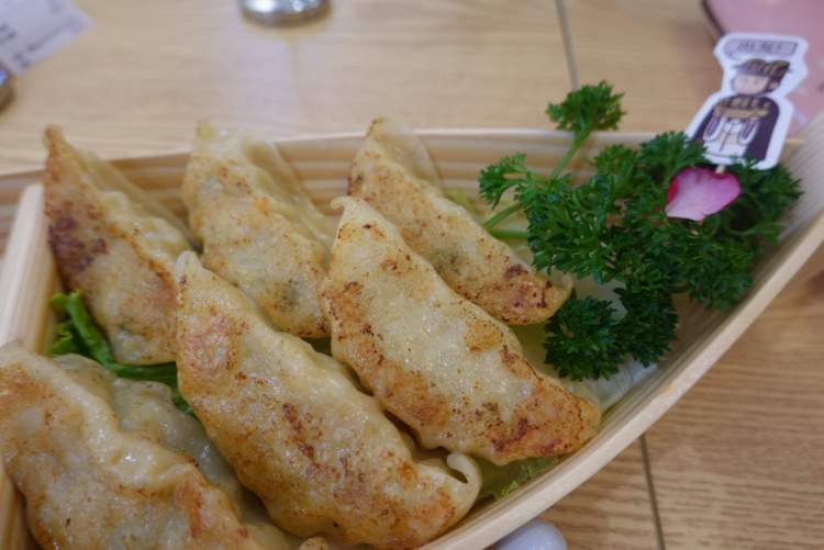 如果说饮料和甜点是颜值担当,那么主食就是吃饱担当。这份“郑和下西洋”,船型的餐盘上放着船型的煎饺,郑和的人物小立牌居于船首。有一说一,鸡肉蔬菜煎饺味道不错。