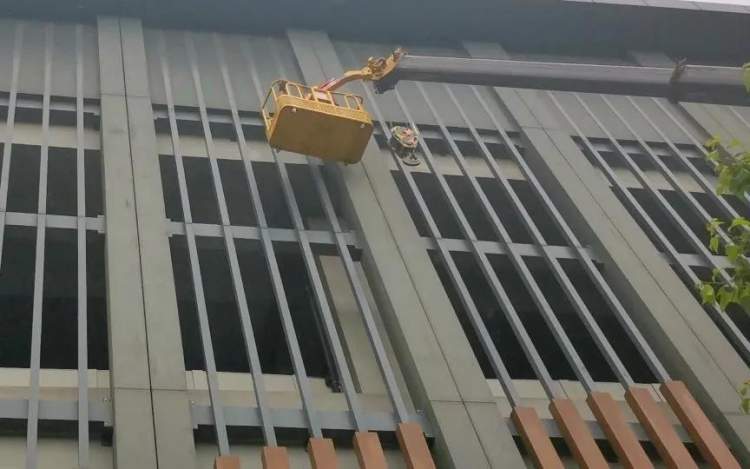 之后2小时内,吊车抵达现场后,工作人员将被大风吹坏的外墙装饰板进行加固,并对其它所有外墙装饰板实施检查,确保装饰板安全牢固。
