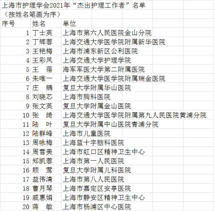 上海市护理学会2021年“杰出护理工作者”中,来自各家医院20名护士榜上有名!
