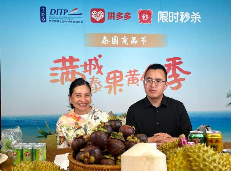 泰王国驻上海总领事乐达·普玛女士、商务领事庄艳兰女士双双做客拼多多“限时秒杀”官方直播间,为平台消费者推荐泰国时令水果、饮料和精品美妆等进口产品。