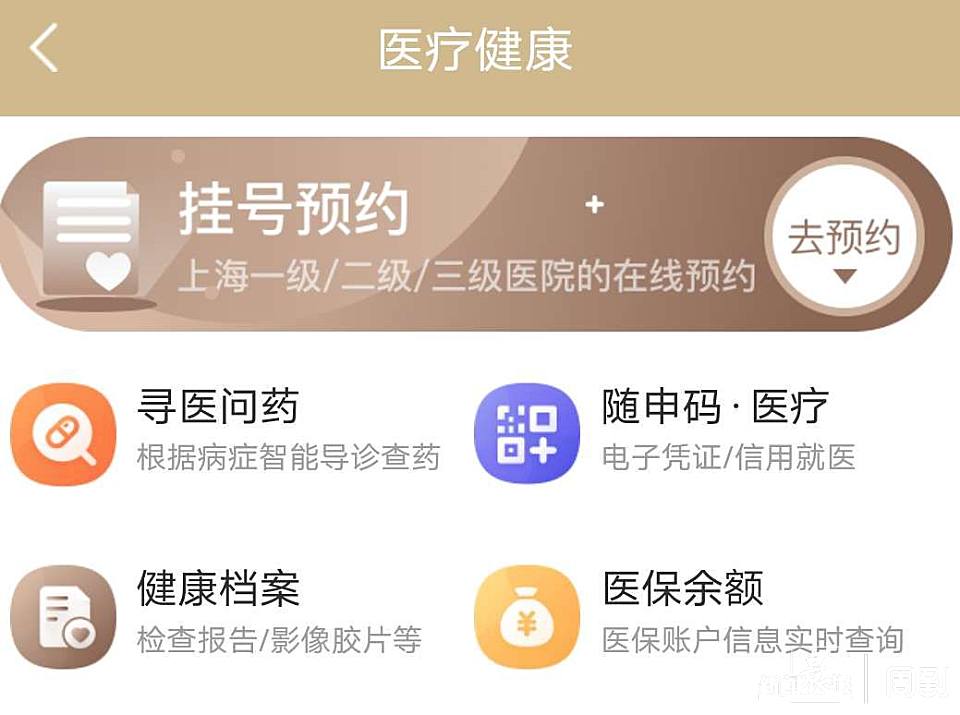 打开随申办APP,点击进入“医疗健康“主题,最上方就是“挂号预约”入口,点击“去预约”,关联姓名、手机号、身份证号、社保卡号等信息后,即可进入“上海健康云”预约挂号平台。
