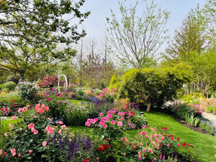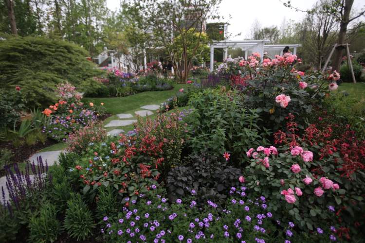 走进园子,萱草、紫薇、日本进口杜鹃、丛生黄连木、山茶、绣球、鼠尾草、超级凤仙、钓钟柳、天竺葵、落羽杉、桫椤树、罗汉松、黄金枫等500多种花卉植物遍布其中,合理搭配,营造出一座亦传统亦现代的都市花园。