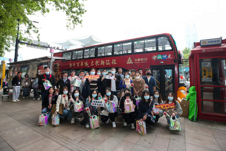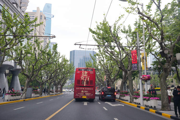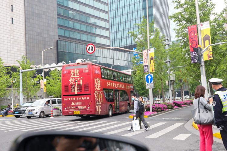 男女嘉宾在中共二大会址上车,坐在“党史大巴”的二层,一边游览红色历史遗迹,一边互相畅聊。