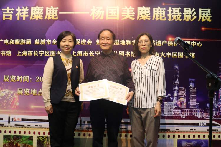 本次展览是杨国美先生的精品展示,他用摄影镜头记录着盐城生态文化,用视觉书写着盐城湿地风光,带来世界遗产地的黄海气息、神鹿祥瑞。早在去年10月,摄影展首站选在上海市宝山区图书馆,吸引了大批摄影爱好者前往参观交流;同年12月,摄影展在上海市崇明区图书馆展出,帮助上海市民加深对盐城地域文化的了解。捐赠仪式上,杨国美先生向上海市长宁区图书馆、长宁区少儿图书馆捐赠摄影画册。上海市长宁区图书馆、长宁区少儿图书馆向杨国美先生回赠收藏证书。