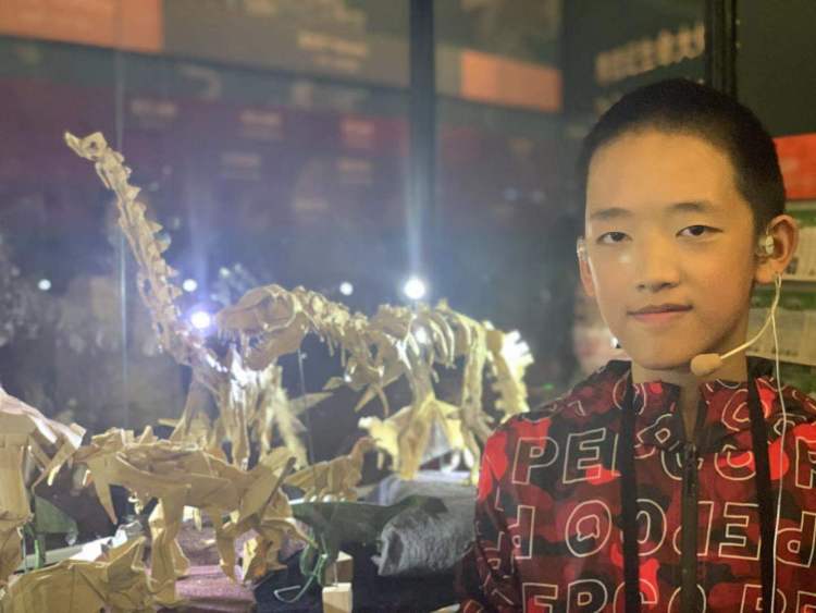 在今天的活动现场,他化身“小老师”,教小朋友们折霸王龙和三角龙,他希望通过本次活动寻找更多的现代折纸爱好者,让大家和他一起享受现代折纸的乐趣,更希望让大家通过折纸更加生动、有趣地了解古生物。