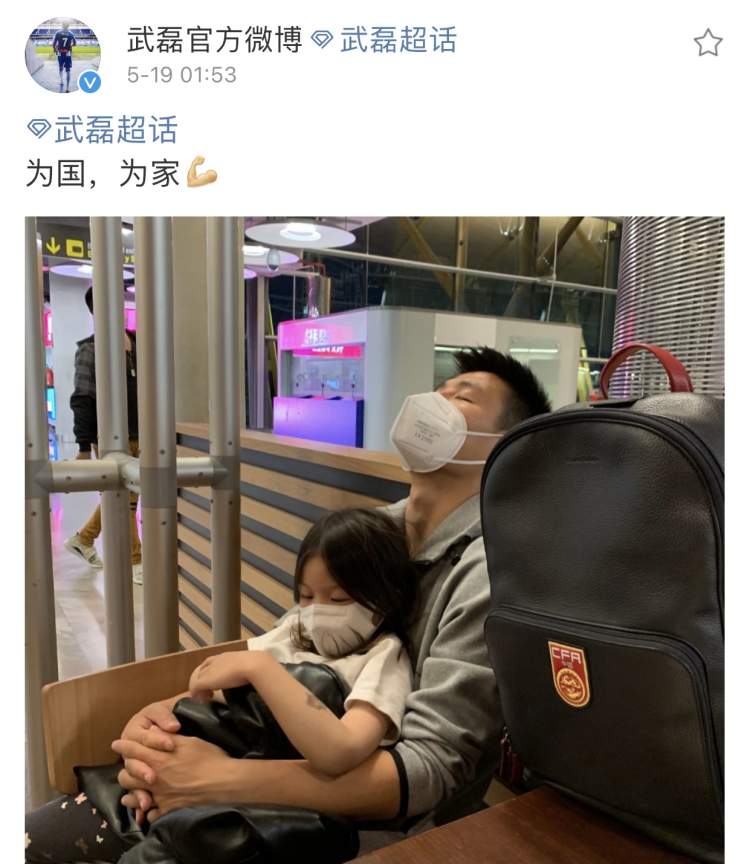 此外,武磊官方微博今天凌晨也发布了一张他在马德里机场候机的照片。由于航班在当地时间凌晨3点多起飞,戴着口罩的武磊抱着女儿在椅子上打瞌睡。看来在西乙赛季马上就要结束的情况下,这次武磊的家人应该也是和他一起回国。
