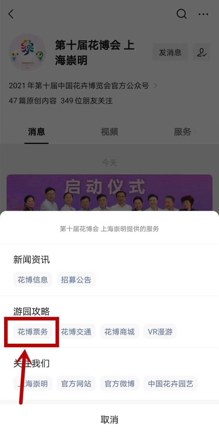 三、通过“第十届花博会 上海崇明”微信公众号购票