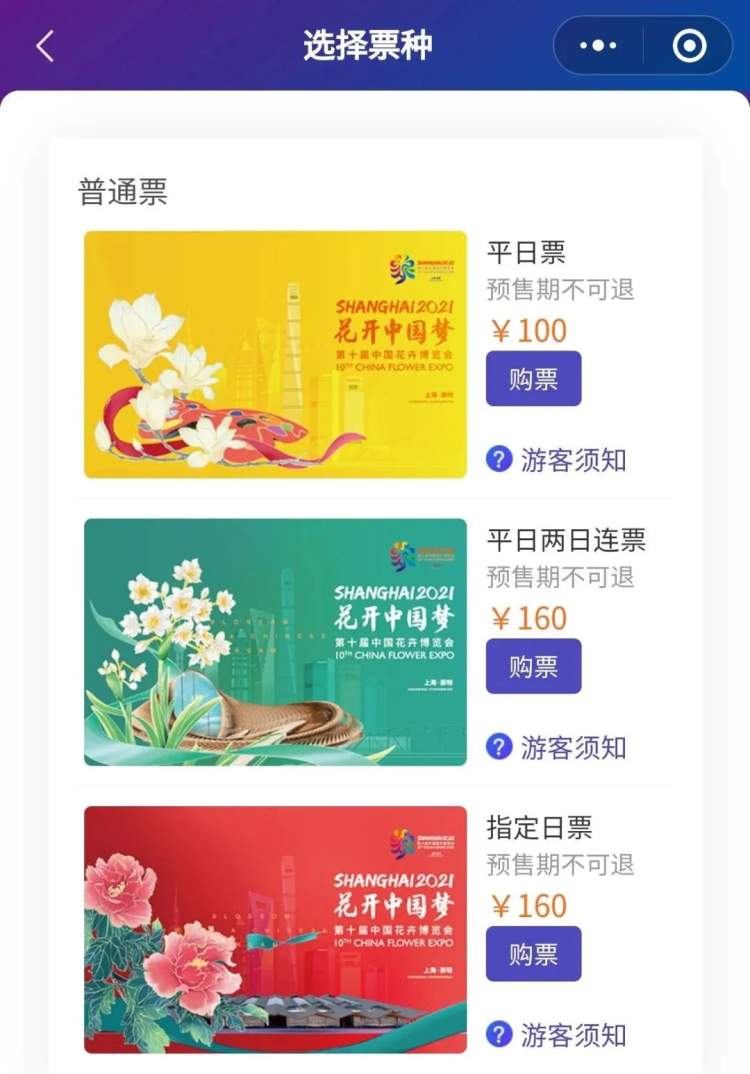 第一种:指定官方渠道,登录“随申办”微信小程序、APP中的“2021上海花博”入口进行购票;“第十届中国花卉博览会”官方网站和微信公众号、“上海崇明”APP。