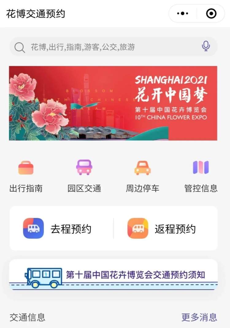进入“随申办”的“2021上海花博”界面后,点击“交通”按钮,提供花博专线、定制巴士、水陆联运等出行方式及停车场的预约,此外还“配套”了出行指南、园区交通、周边停车等交通信息。