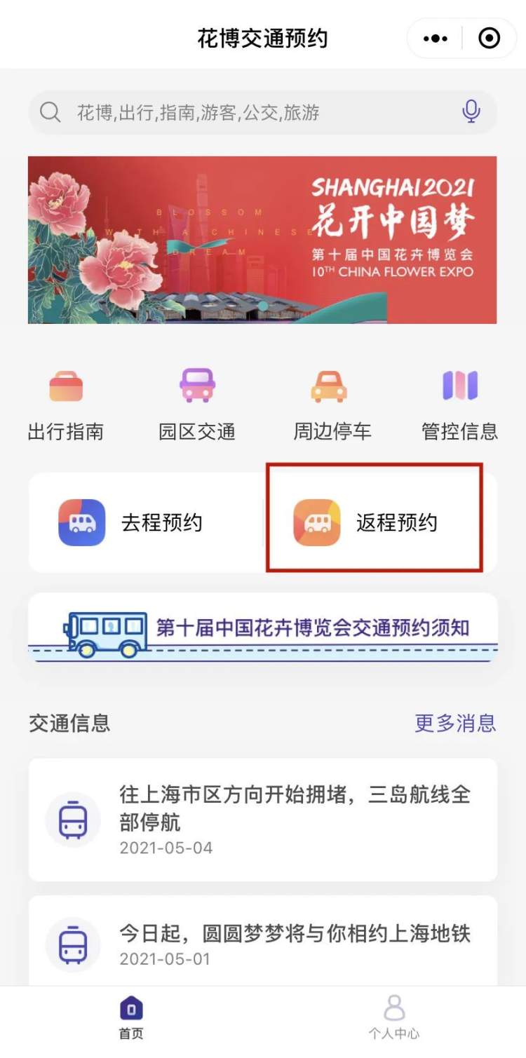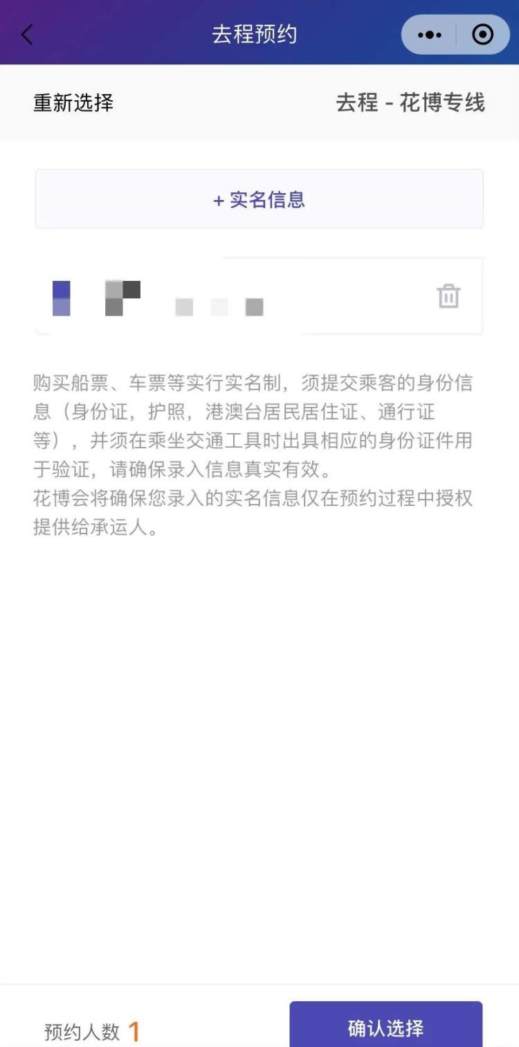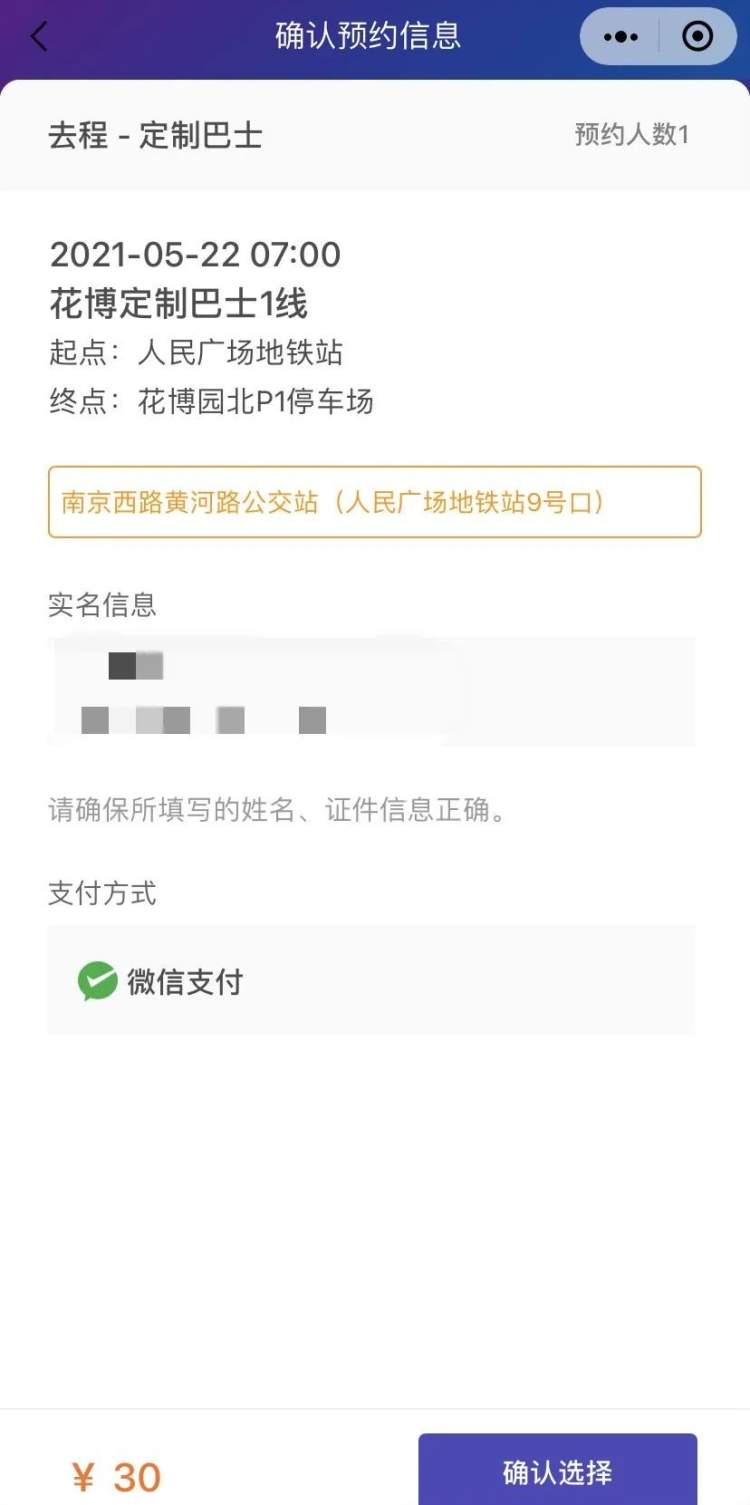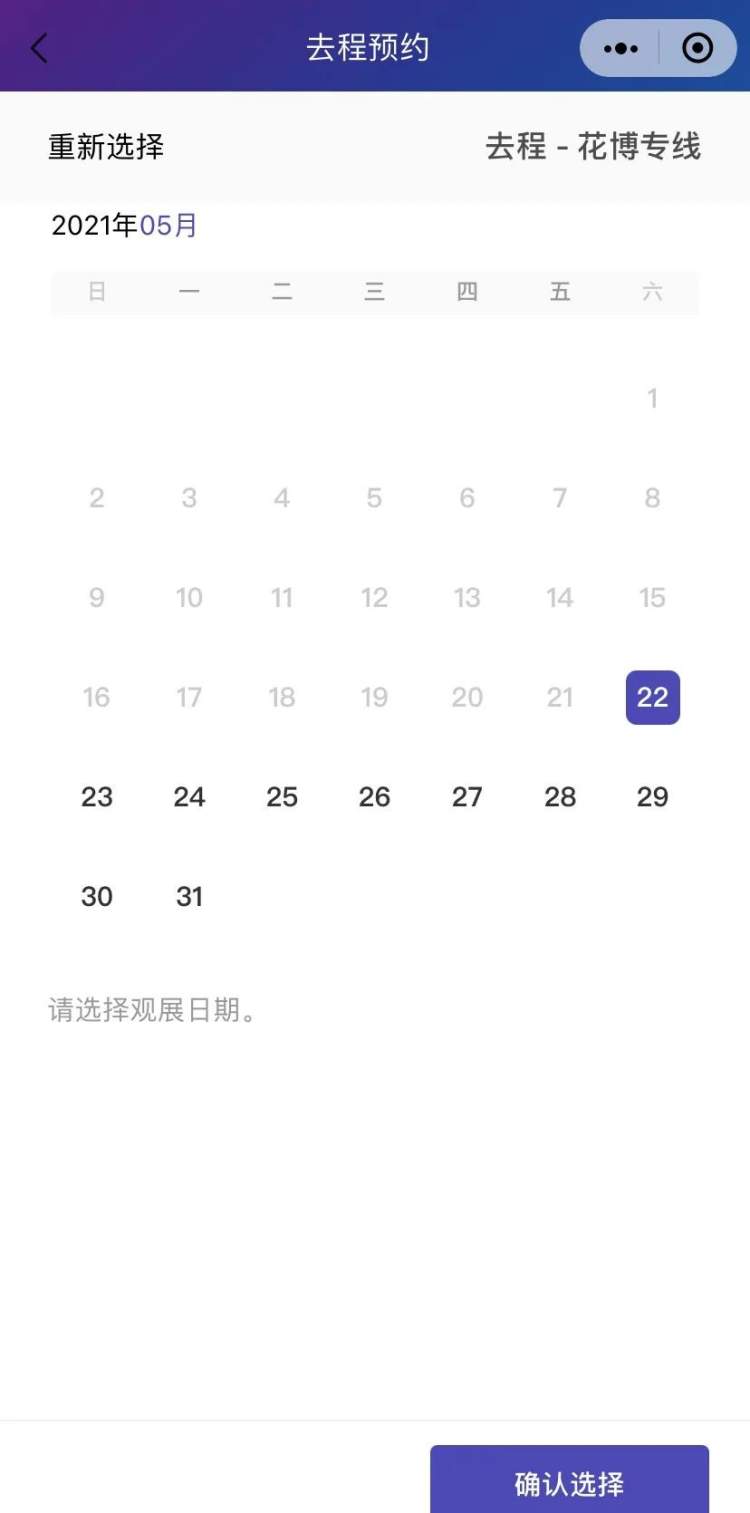 在“花博交通”系统中,点击去程预约,选择花博专线并确认。