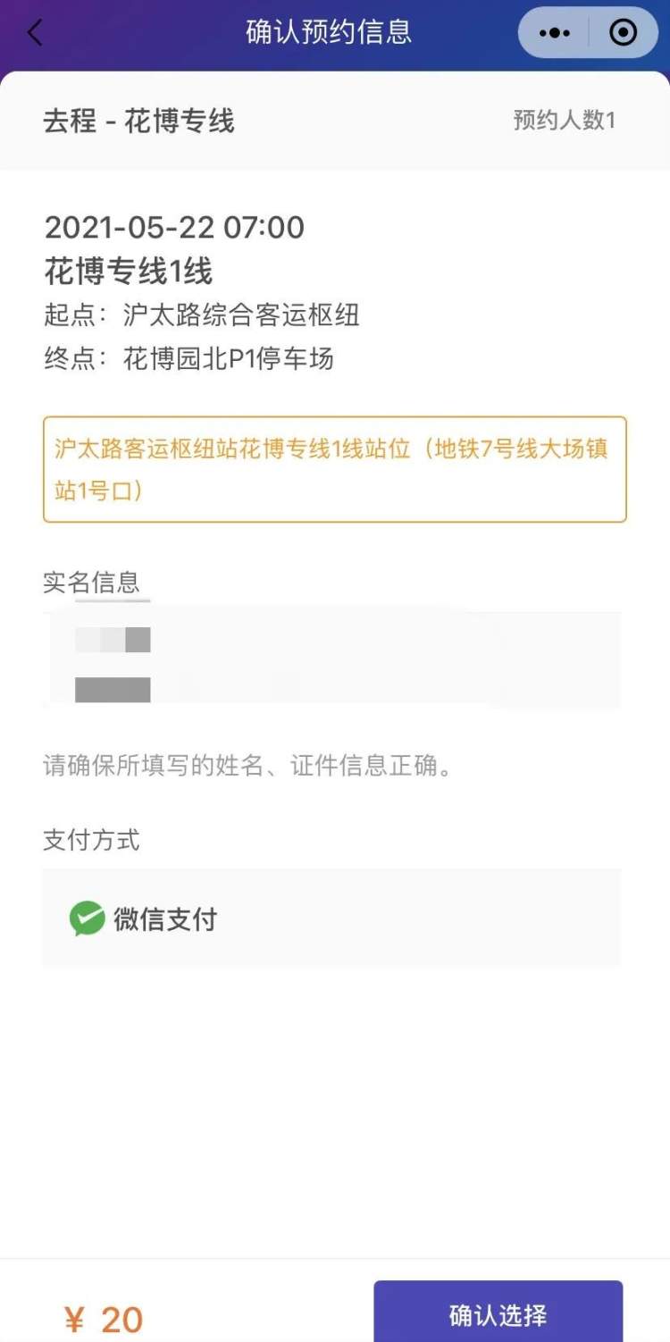 选择观展日期、线路、上车时间并确认,核对相应信息后,即可支付。