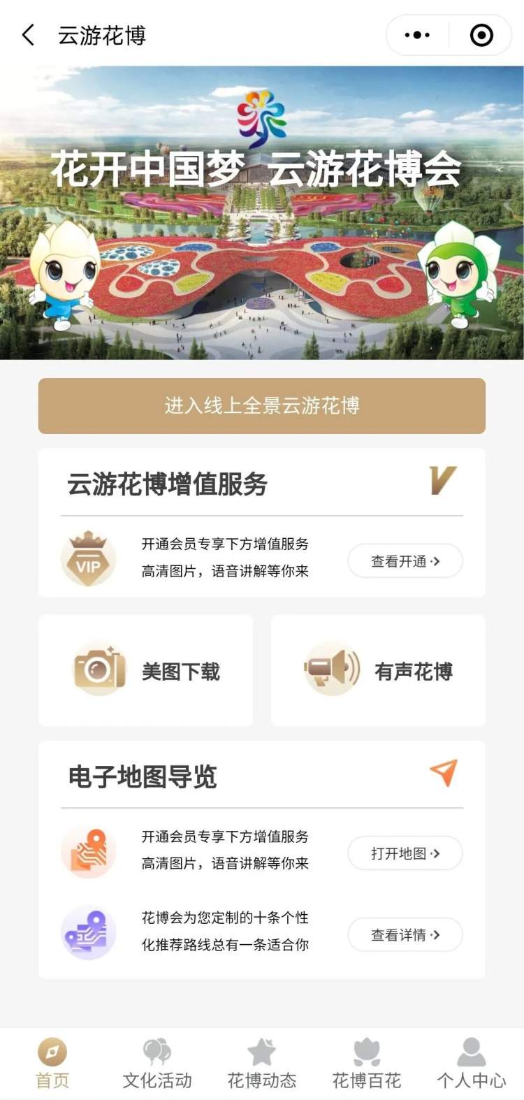 点击“云游”按钮,云游花博为您提供美图下载,有声花博为您提供语音导览,并提供360度在线全景游。