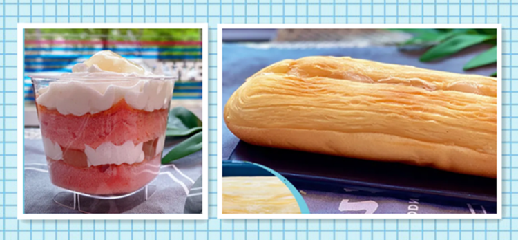 除了常规品之外,部分便利店还推出了定制款。今天(5月19日)上新的白桃奶油芝士杯、白桃馅酥皮面包,热腾腾的新人,颜值着实不错。