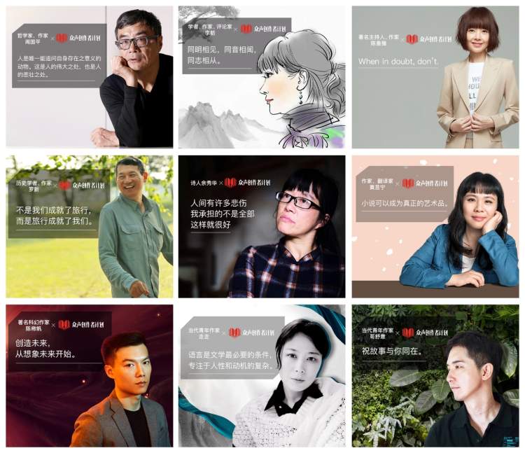 创作是行走世间的拐杖,亦是人生路上共情悲欢的记录。哲学家、著名作家周国平对“众声创作者计划”说:“人是唯一能追问自身存在意义的动物。这是人的伟大之处,也是人的悲壮之处。”著名主持人、作家陈鲁豫的寄语则俏皮得多“When in doubt,don’t”,恰好契合她的新书名字《还是要相信》。学者、作家、评论家李舫则坚信更古典主义的人生态度,“同明相见,同音相闻,同志相从。”