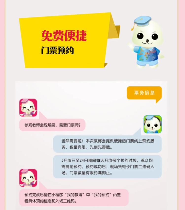 本届教博会大直播将持续20天,从5月24日起,每天晚上19:00-20:00,通过“上海教育博览会”小程序、上海人民广播电台“教子有方”、澎湃新闻、看看新闻等多平台推送。