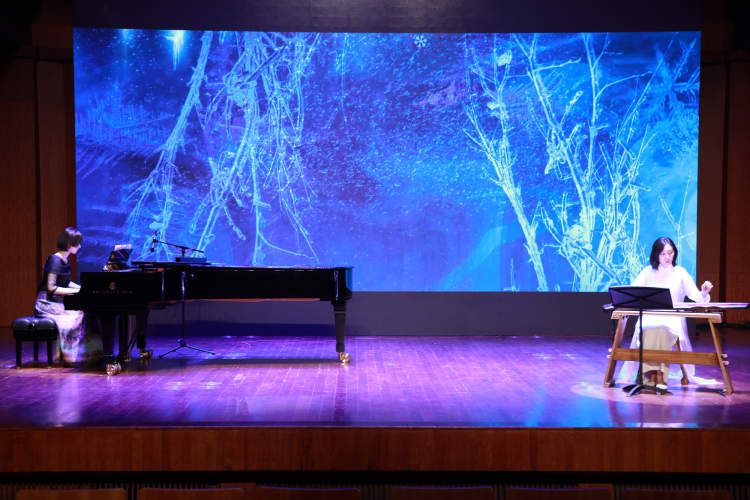 钢琴和古琴在“雪”和“梅”、“风”、“月”角色间的切换,形成“古今对话”的关系。画面以视觉意象的形态变化与运动配合音乐的旋律与节奏,形成视听的虚实交错、结合的效果——希望观者能从中得到一种净心、清心,在这个纯洁的雪世界,拥有一段对[静]和[美]的体验时光。