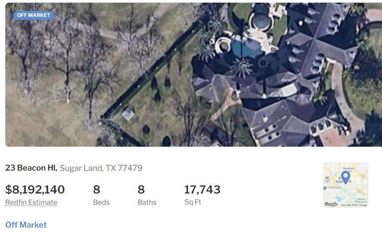 麦迪的房子是23号,总面积为23653平方英尺(约为2200 平米)目前在美国房产网站HAR.com、Redfin上,估值在819万美元、650万美元不等。