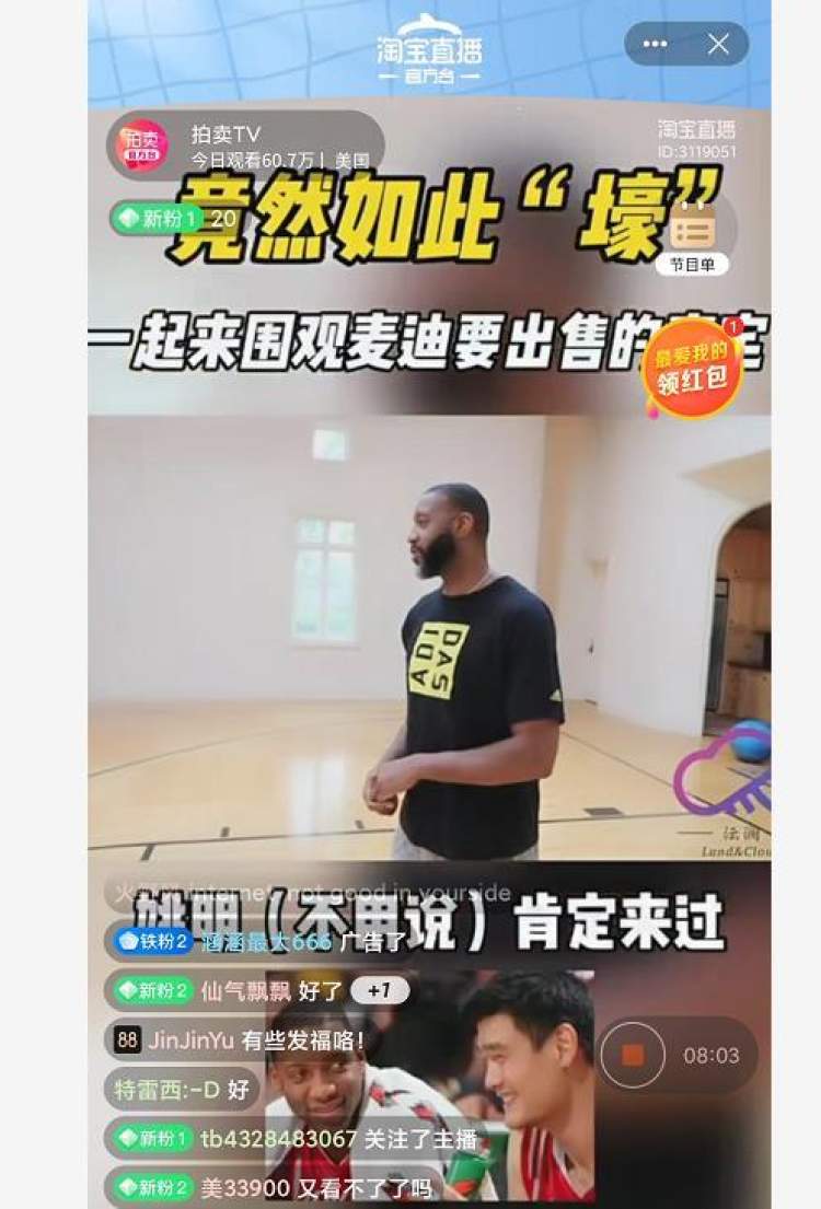 为了卖房子,麦迪还在17日晚做了场淘宝直播带货。