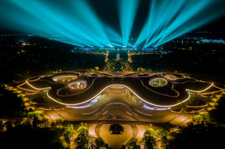 除了白天的风景,夜晚的花博园也很好看,主入口拉膜、世纪馆、复兴馆、沿河亲水平台等处都安装了夜景灯光,更有主题光影秀。