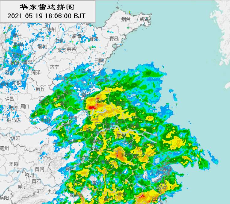 一波波降水云团自西向东移入,截至16时,大部地区累积雨量在小雨量级,南部个别站点达到中雨。